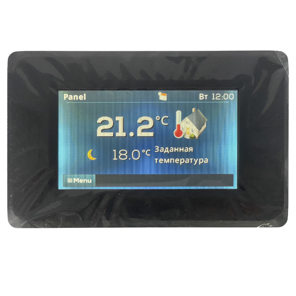 Belaidis kambario termostatas su 480×272 jutikliniu grafiniu ekranu. Pilnas reguliatoriaus parametrų valdymas, kuro lygio stebėjimas ir sistemos būklė. Mobiliųjų programėlių palaikymas per ecoNET300.