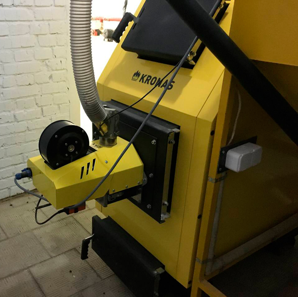 Granulių katilinės montavimas sandėliui su KVIT Lyuta 50 kW granulių degikliu. Autonominis veikimas su minimalia operatoriaus intervencija.