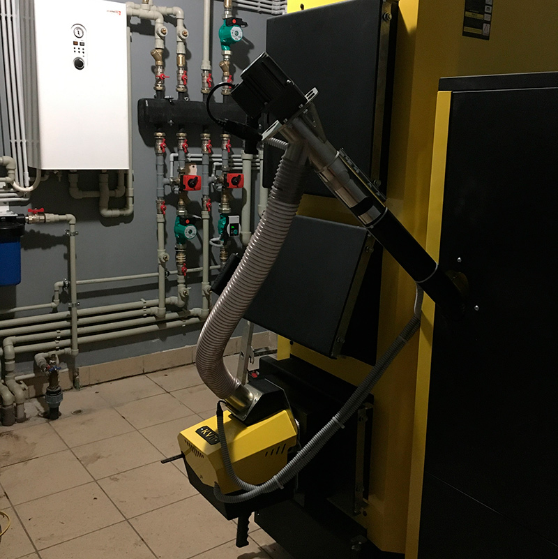 Компактний пелетний пальник потужністю 10 кВт серії Optima. Самоочищення рухомими колосниками, вбудований шибер зворотної тяги. Для приміщень до 100 м².